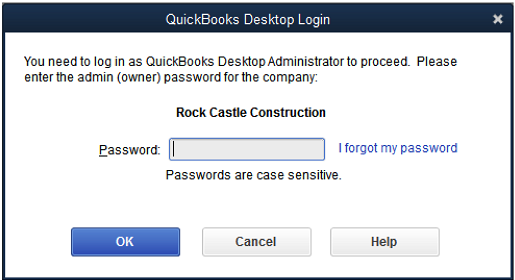 - Open QuickBooks company file in QuickBooks Desktop, and when it prompts you to enter the password click, I Forgot My Password.