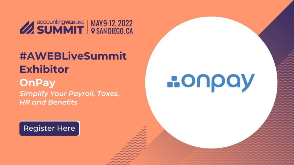 In addition to the fantastic networking opportunities and engaging content agenda you’ll find at the AccountingWEB Live Summit this May in San Diego, we also have exhibit halls filled with vendors who offer the latest technology that will solve your problems and help you work more efficiently. This week, we spoke with OnPay about making sure accounting professionals have the right tools to succeed, why OnPay is excited to be a part of our first conference, and more.