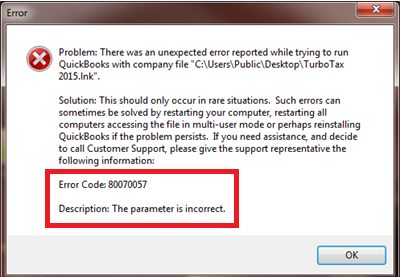 QuickBooks encounters errors while opening the company file that is quite common while running the QuickBooks Desktop application. QuickBooks requires permission to access files located inside the QuickBooks folder for smooth operations. When a user does not have proper read/write or delete permission, QuickBooks error 80070057 is triggered in QuickBooks with an error message “The Parameter is Incorrect.” Several possible reasons trigger this error in the application, and we have listed all of them further in this article. Follow the complete article for detailed troubleshooting info.