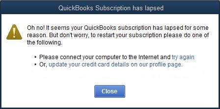 QuickBooks Subscription has Lapsed Warning